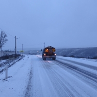 Echipele de intervenție din cadrul unităților teritoriale S.A. „Drumuri” sunt mobilizate în teren și acționează pentru curățarea zăpezii și combaterea alunecușului, în vederea asigurării condițiilor optime de circulație.