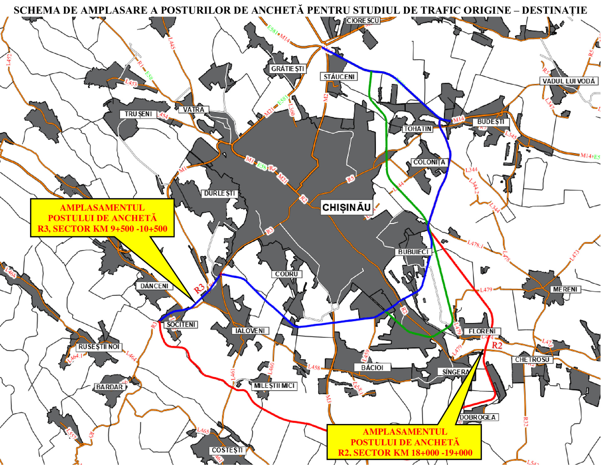 - Traseul R2 Chișinău-Bender-Tiraspol-M5, sectorul cuprins între km 18,500 – 19,500;