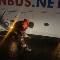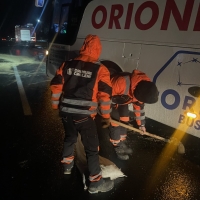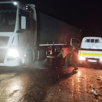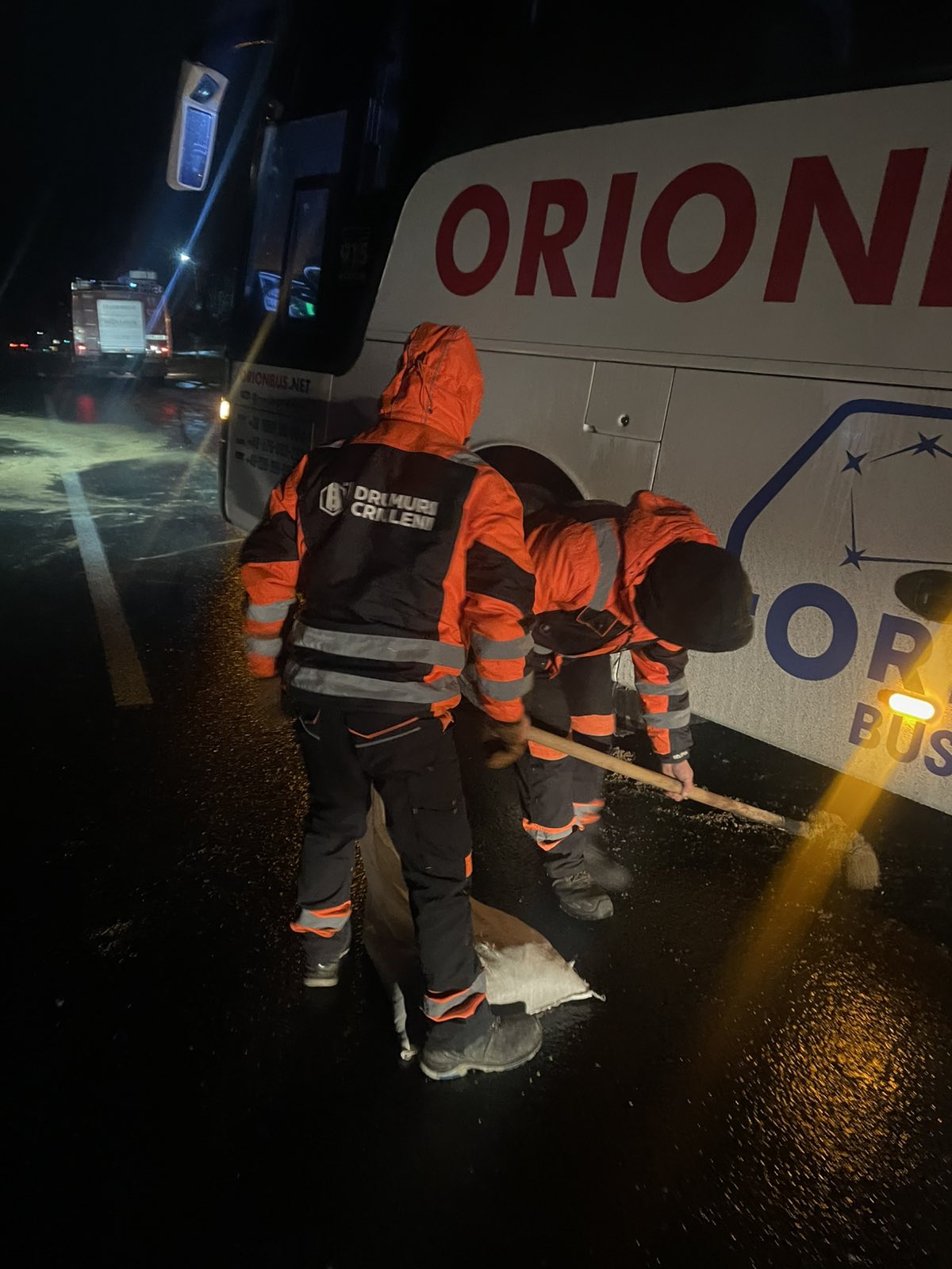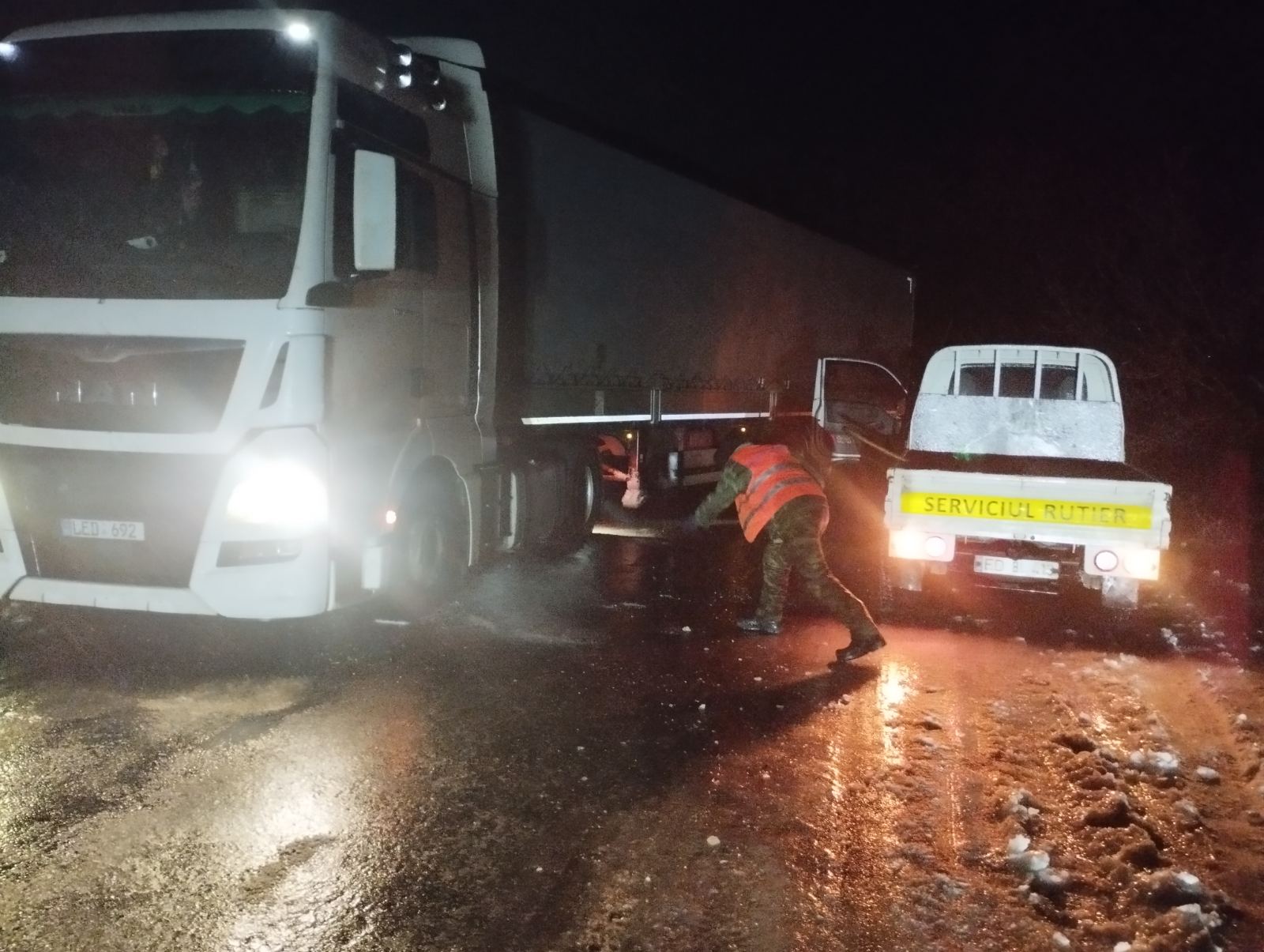 Pe parcursul nopții, Serviciul Operativ al AND a recepționat 37 de apeluri din partea cetățenilor, 49 de sesizări prin intermediul INSP, precum și 68 de sesizări transmise prin Serviciul 112, iar ca urmare a acestora drumarii au intervenit operativ pentru tractarea și deblocarea mai multor autovehicule și camioane, rămase împotmolite sau derapate din cauza poleiului.