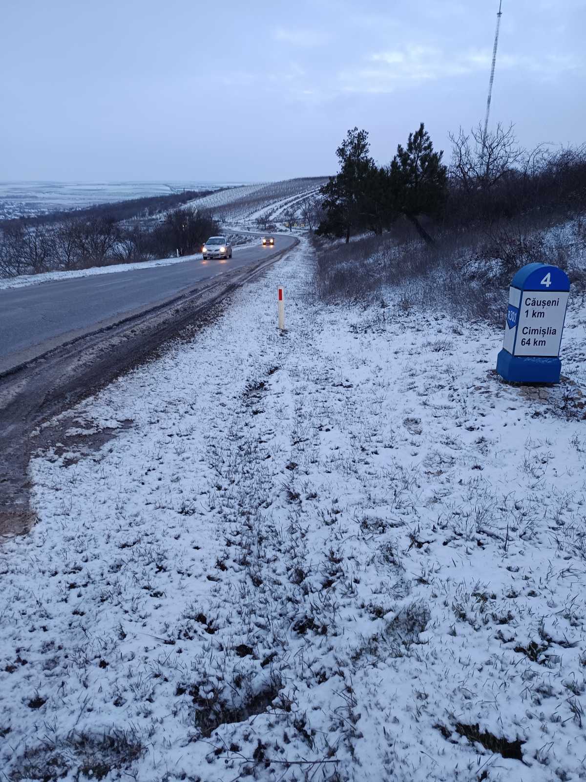 La această oră, circulația rutieră pe drumurile naționale se desfășoară în condiții de iarnă. Partea carosabilă este umedă, iar pe alocuri înzăpezită, în toate zonele țării.