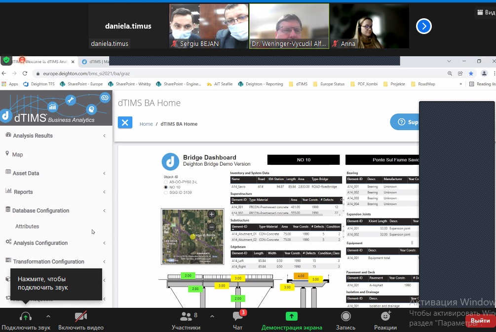 În cadrul unei ședințe în regim online dintre Î.S. „Administrația de Stat a Drumurilor” cu participarea reprezentanților companiei de consultare „Roughton”, s-a discutat despre sistemul de management a lucrărilor de artă, elaborat de compania Deighton din Canada.