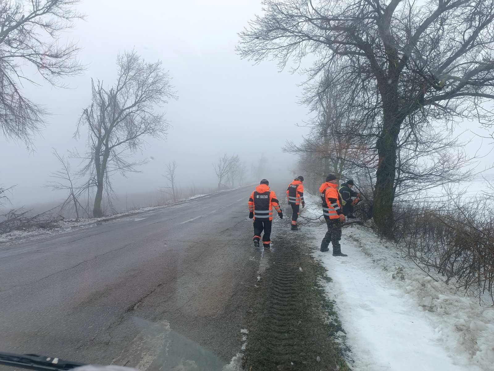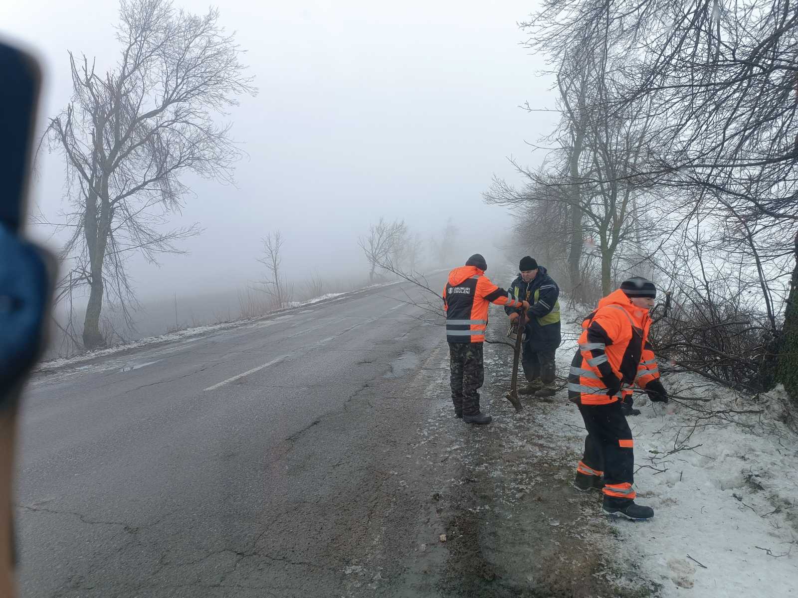În cadrul intervențiilor, au fost înlăturate crengile și arborii căzuți pe partea carosabilă și pe acostamente, ca urmare a depunerilor de chiciură, precum și curățate zonele adiacente drumurilor de zăpadă.